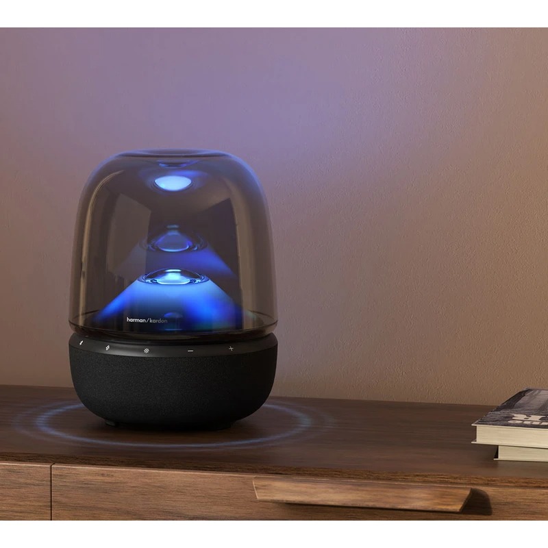 یکی از مهمترین ویژگیهای Harman Kardon Aura Studio 5 طراحی شفاف و گنبدی شکل آن است که جلوهای خاص و مینیمال به محیط میبخشد. نورپردازی داخلی این اسپیکر با افکتهای الهامگرفته از طبیعت، همزمان با ریتم موسیقی تغییر میکند و فضایی آرامشبخش و دلنشین ایجاد میکند. این ویژگی باعث میشود Aura Studio 5 علاوه بر یک سیستم صوتی حرفهای، به یک عنصر دکوراتیو جذاب در سالن پذیرایی، اتاق خواب یا دفتر کار تبدیل شود.